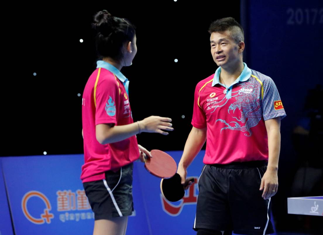 2017红双喜CFC乒乓球电视邀请赛11月18日在湖南长沙湖南广电500坪演播厅拉开帷幕。而本次作为万众瞩目明星队伍出战的陈卫星和女儿陈璐组成的星璐组合却在总决赛首轮就以0-3败下阵来,虽有遗憾,但陈卫星却坦言,能跟女儿一起参赛很高兴,带着她来感受国内乒乓球氛围是一次很宝贵的经历。 陈卫星和陈璐遭遇的对手并非等闲,丈夫蔡航22岁曾获得2008年河南省锦标赛单打冠军,妻子王澜睿21岁今年还在打甲A的比赛并获得女团冠军。第一盘是陈卫星对阵蔡航,双方实力都非常强劲,而陈卫星打得相对保守,削球在球场跑动来说相对没有那么灵活了,但专业球员的素养不输。 虽然场上比分一度落后,但陈卫星脸上却看不到太多胜负欲,比赛中甚至都是挂着笑脸,相反场边休息时,女儿陈璐作为场外指导,一直在滔滔不绝的在跟父亲交流讨论着,陈卫星似乎特别享受和女儿并肩作战的感觉,女儿双打中失误较多,但是陈卫星都在认真的指导女儿,并引导她做更多有效的防守,最终在双打对决中带领女儿在失利情况下扳回一局。 虽然整体实力和体能,可能都不如蔡航、王澜睿夫妇,但陈卫星却打得不慌不忙,和他平时打专业比赛和商业比赛不同,他今天少了几分杀气,就像是带着女儿参加一场家庭活动一般,让女儿感受周围的观众的呐喊声,感受长枪短炮的摄影机,感受聚光灯下的赛场,教她如何应对对手的强势进攻,这是作为一个父亲能带女儿经历的成长,而先锋乒羽频道CFC家庭杯乒乓球赛有幸记录下来了,虽然作为比赛输了有遗憾,但锋妹想,这对陈璐来说一定是一次意义非凡的中国之旅。 乒乓球的传承和传播,在陈卫星和陈璐父女俩身上很好的展现出来,从奥地利到中国不过千万里,但我们追逐乒乓球之路却不远万里。 (来自父亲宠溺的眼神和微笑) >>背景介绍 陈卫星曾是中国乒乓球队的一员。1972年出生在内蒙古的陈卫星从七岁开始便拿起了球拍,从体校到体工队再直升国家一队,陈卫星仅仅花了十年的时间。他是89年进的国家队,算年轻的,因为他直接进的国家一队。和马琳刘国梁他们,打过很多批次。后来出国打球,辗转了几个国家后陈卫星选择了留在奥地利打球。2000年,他获得了奥地利国籍,开始代表奥地利国家队参加比赛。陈卫星这个名字第一次被国人熟知是在2003年,就在这一年的巴黎世乒赛的男单八分之一比赛中,陈卫星以4比3削倒了王皓,将他挡在了八强的门外。